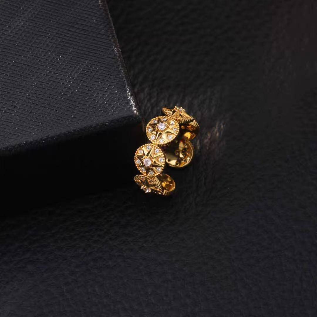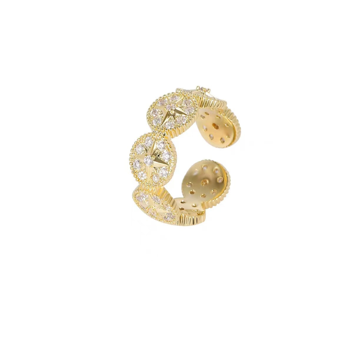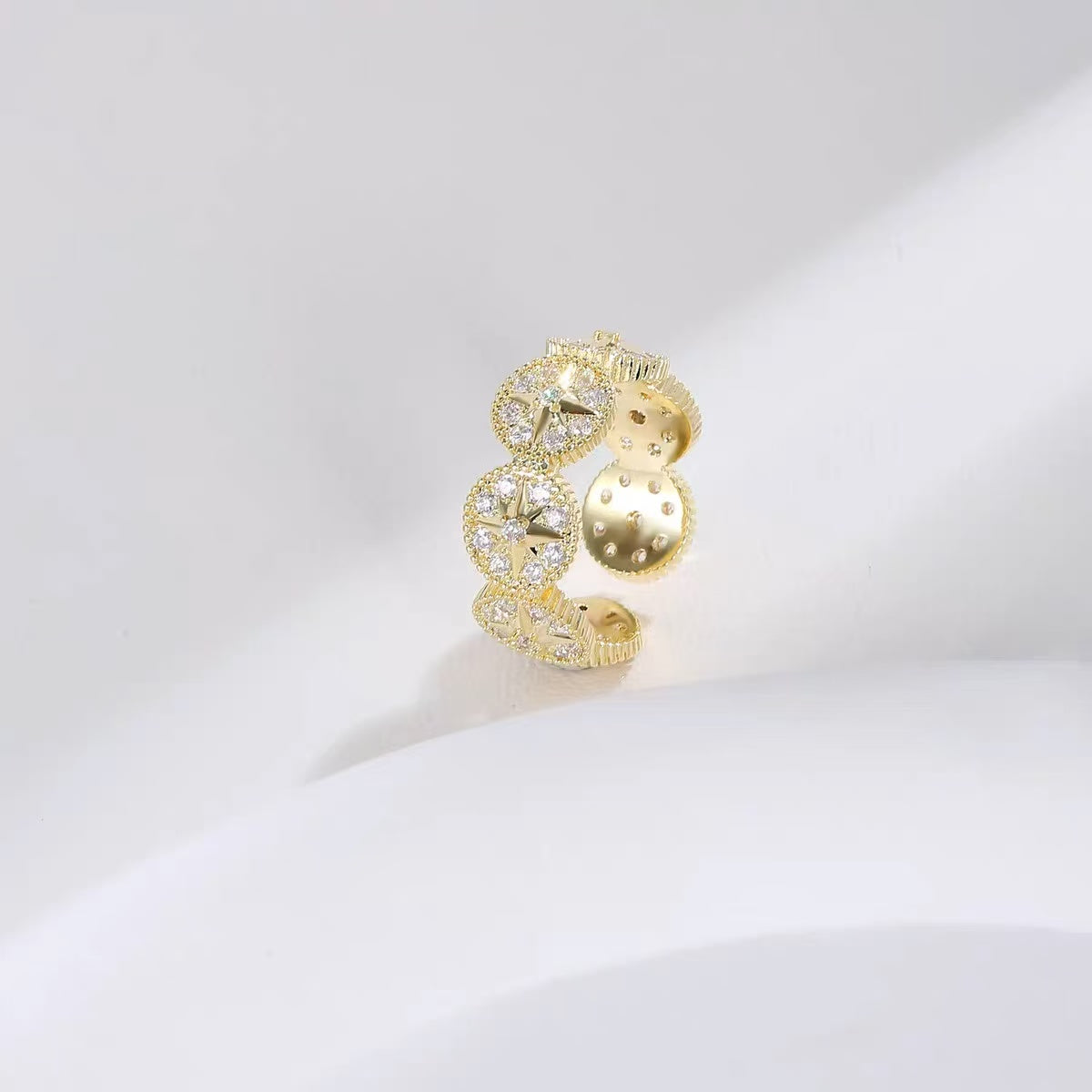 Elegant Copper Jewelry Set – Eight-Pointed Star Open Ring & Bracelet with Full Sparkling Zircon Design, Minimalist Luxury Statement Pieces
