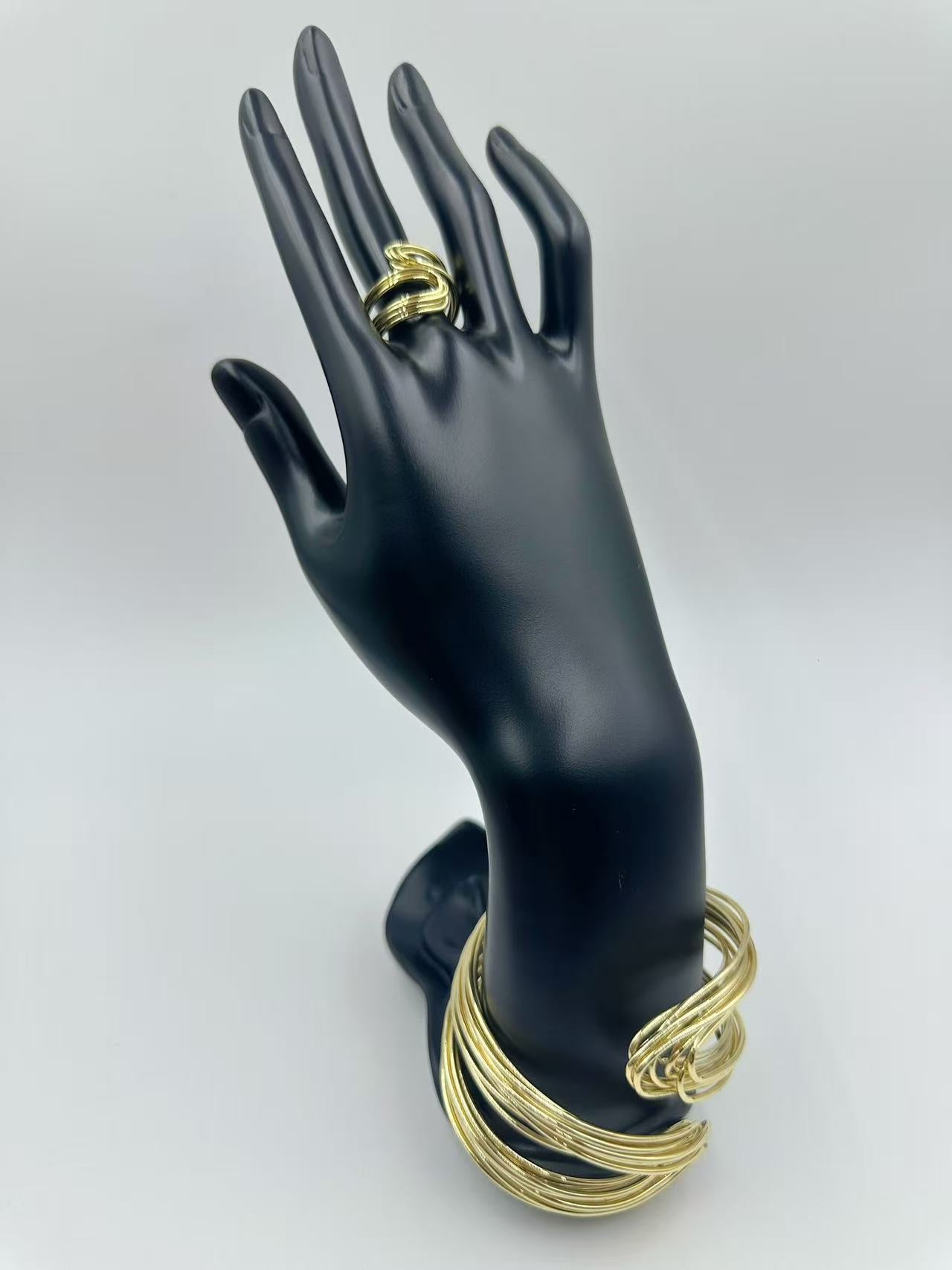 Elegant Multi-Layer Hollow Wrap Bangle & Handcrafted K-Gold Plated Adjustable Ring – Sophisticated 2025 Light Luxury Minimalist Jewelry Set