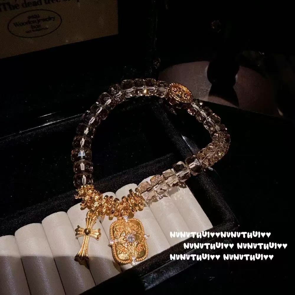 Sparkling Faceted Crystal Cross Charm Bracelet